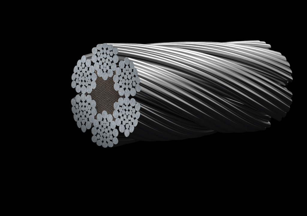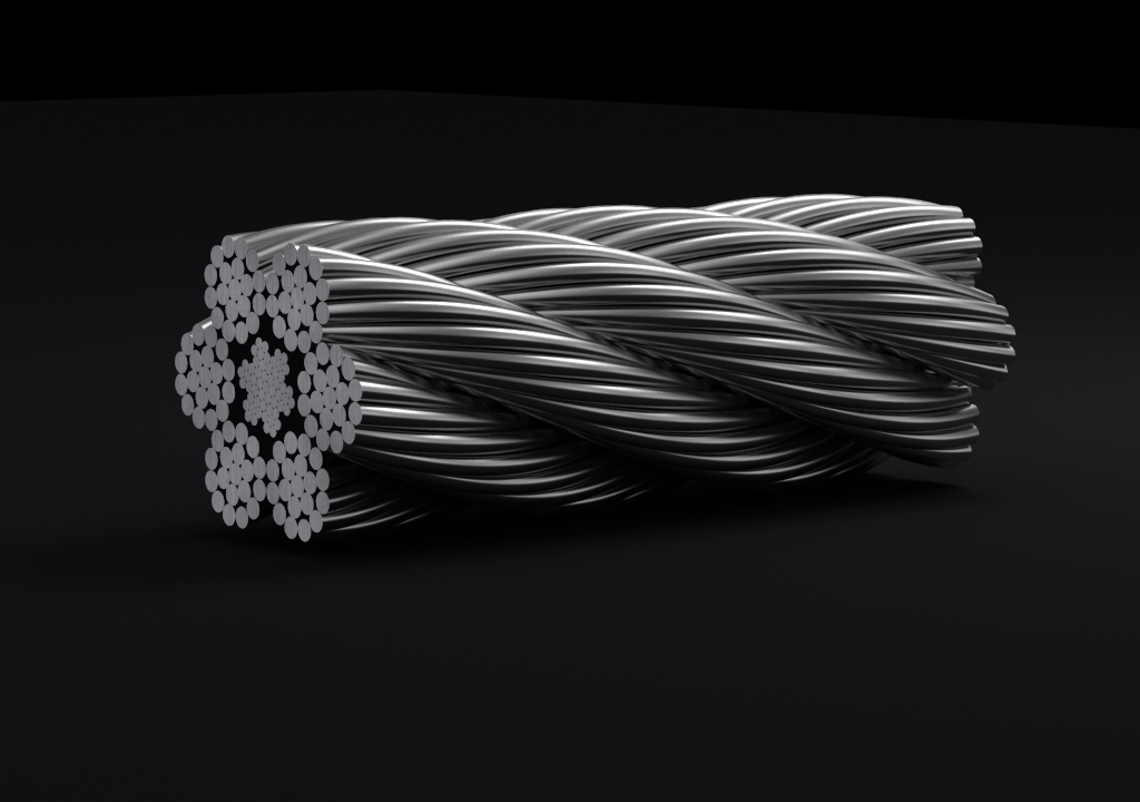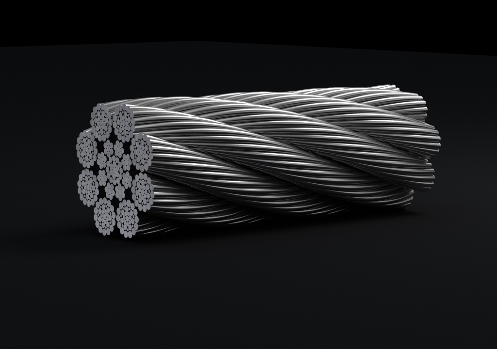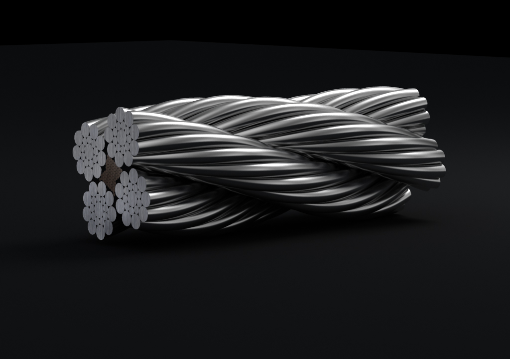 鋼絲繩由多根鋼絲按照一定的規(guī)則捻制而成的繩索。由制繩鋼絲、繩股、繩芯和繩用油脂組成。